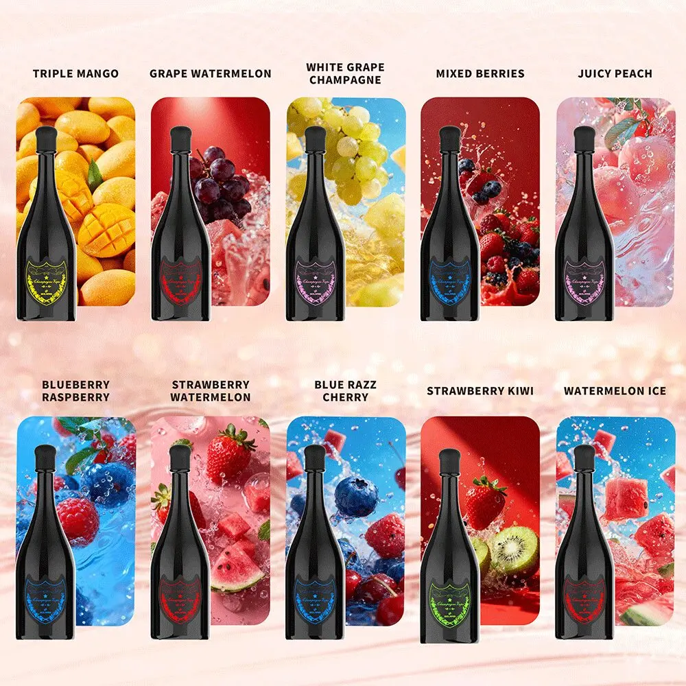 - Premium Design – The champagne bottle shape and LED light effects elevate the vaping experience.